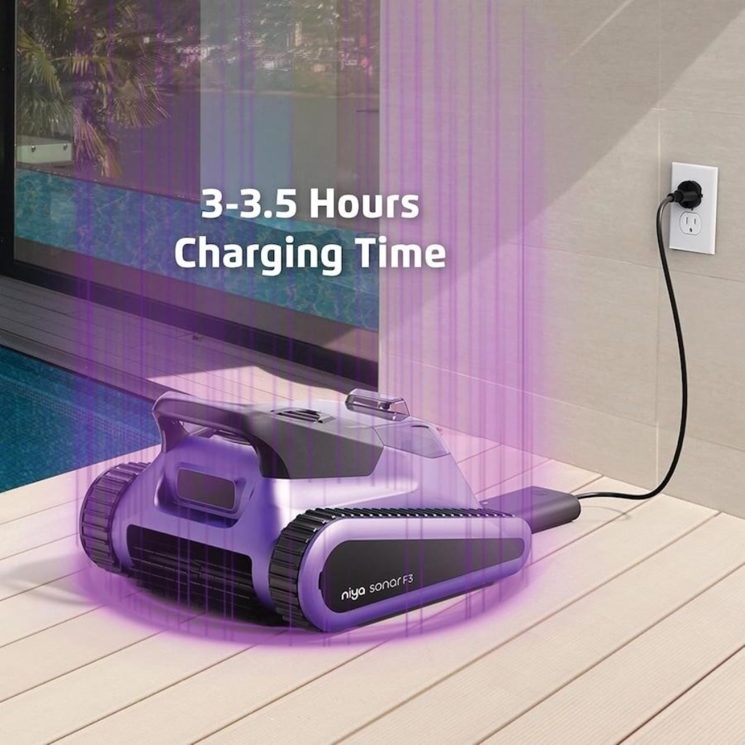 - Cordless Design: Enjoy the freedom of movement with the cordless Niya Sonar F3. Simply charge the robot, place it in the pool, and let it work its magic without the mess of tangled cables, ensuring a seamless cleaning experience.