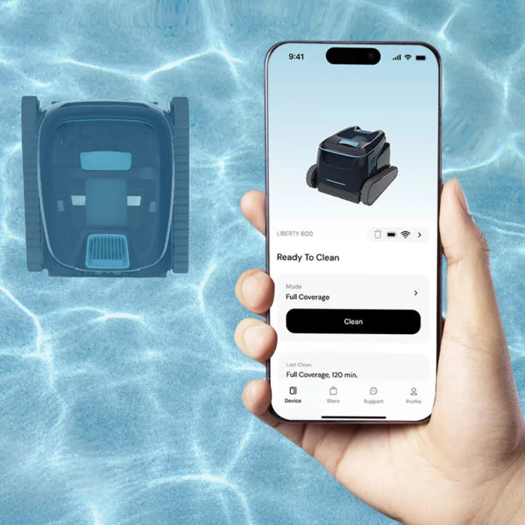 • User-Friendly App Connectivity: Control and programme your Dolphin Liberty 600 effortlessly with the Maytronics One app via Wi-Fi or Bluetooth. Schedule cleaning cycles, monitor cleaning progress, and receive updates directly to your smartphone, putting you in charge of your pool maintenance.