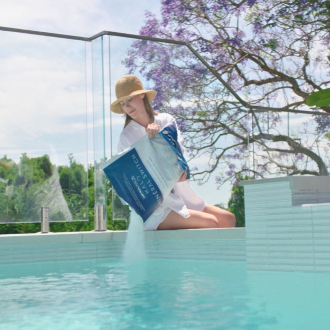 • Conversion Process: Add one bag of Halo Mineral Switch for every 10,000 litres to facilitate a rapid transition to your new mineral pool. For subsequent salt or mineral additions throughout the year, simply use Halo Minerals to top up to your desired salinity.