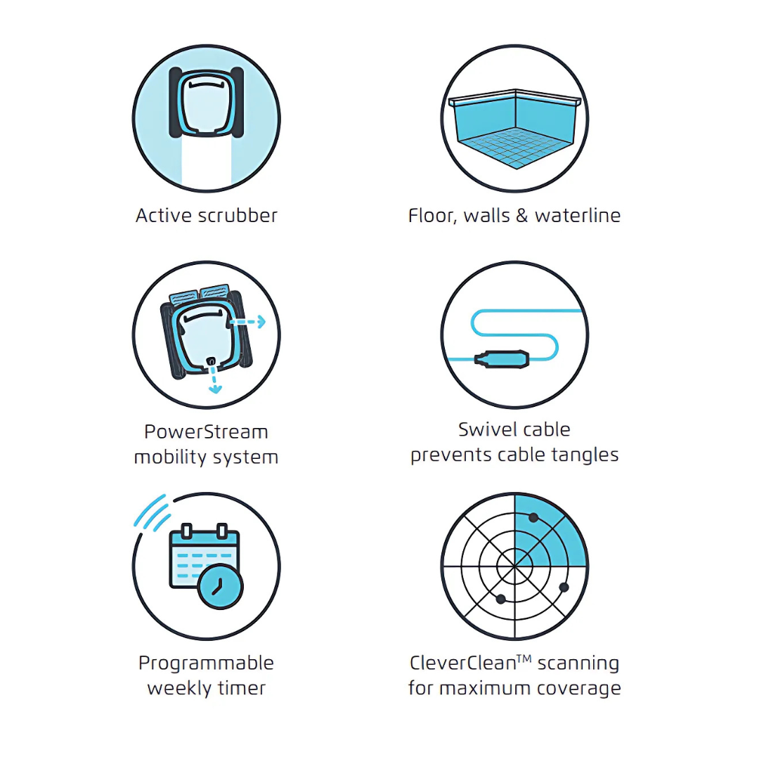 • Weekly Timer Functionality: The S150 offers a straightforward on/off power supply with a programmable weekly timer. Set it once and enjoy peace of mind knowing your pool will be cleaned regularly without any effort from you.